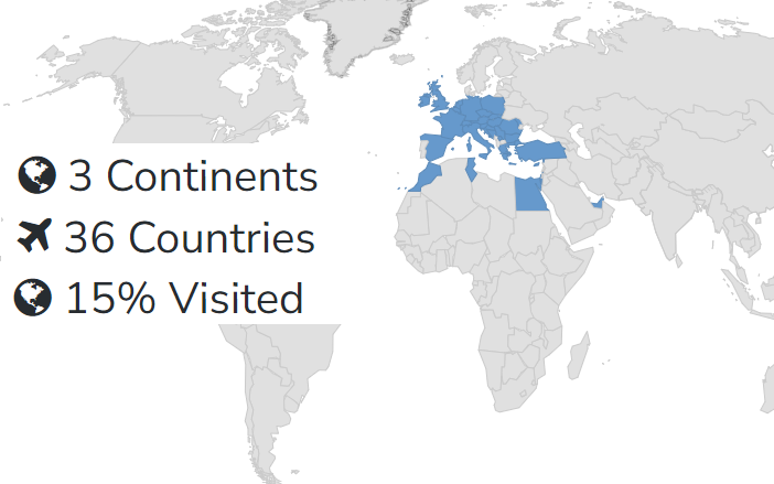 În cei 40 de ani ai mei am reușit să văd până acum 36 de țări – știu că pare atât de puțin, doar 15% din mapamond și peste 90 de orașe distincte. Numărătoarea continuă!